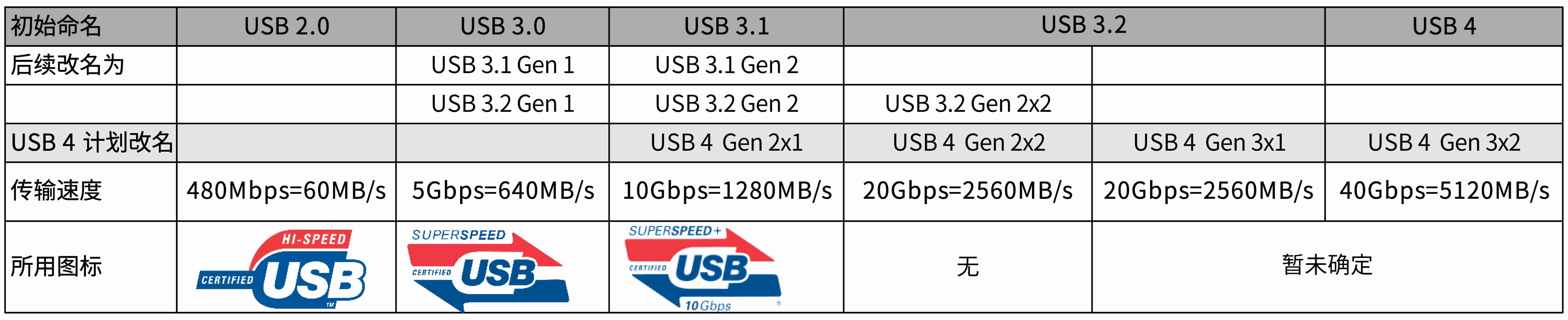 USB 协议的主要任务就是传输数据,不同的 USB 标准带来的本质区别是拥有不同的传输速度。尽管 USB-IF 一直喜欢给老的协议改个新的名字,导致 USB 命名混乱,但从我列出的表中可以看出,在同一系列命名中,依旧摆脱不了「数字大的传输速度越快」这样的规律。