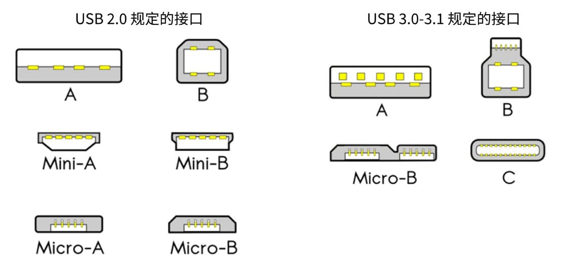 一直以来 USB 接口的形状多样,而协议实际上并不怎么多(加上 USB-IF 一贯喜欢给已发布的协议改个名,这点在下文中还会继续提到),所以给一般消费者的感觉就是一个接口对应一个协议。